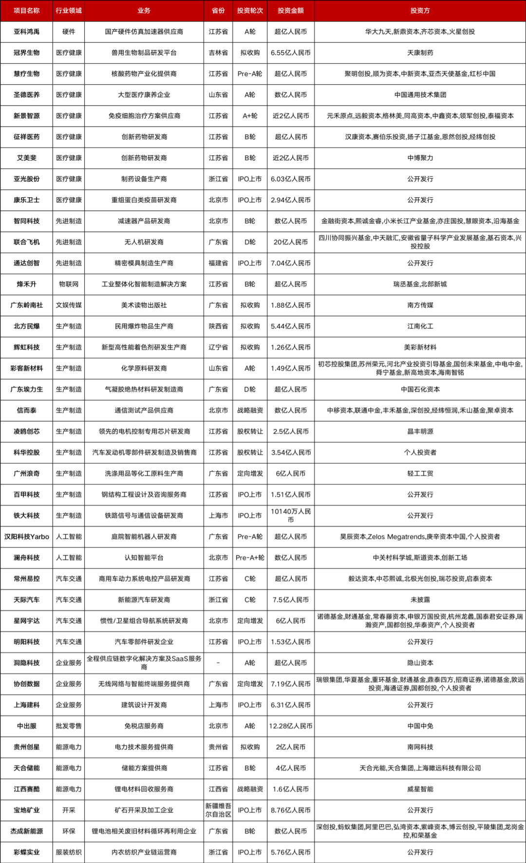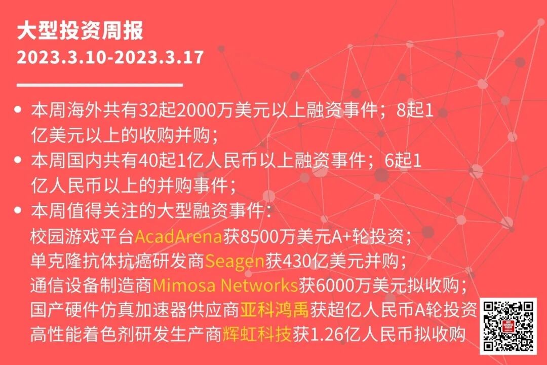 本周共有40起1亿人民币以上的融资事件: