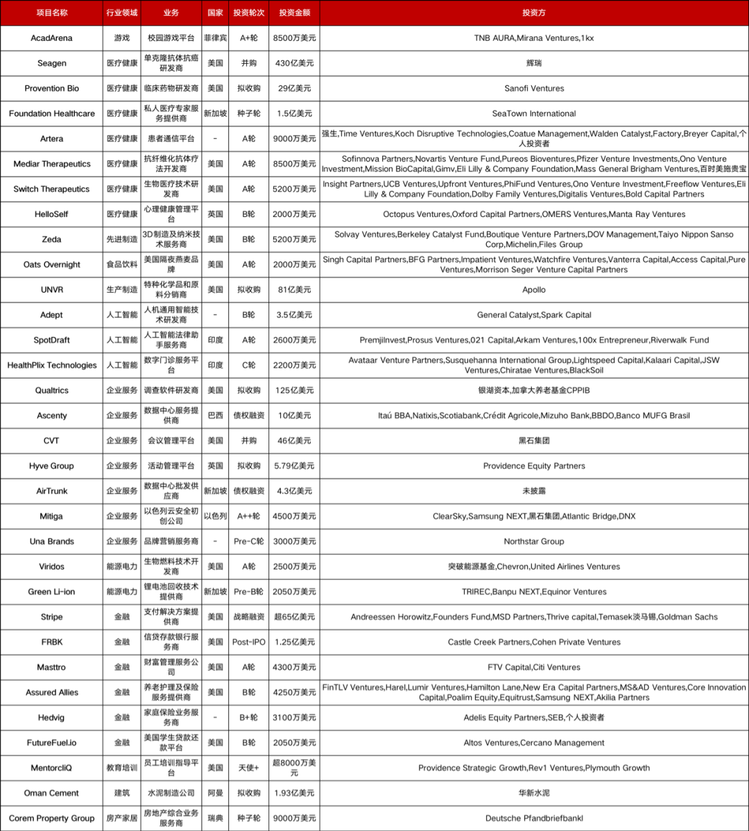 本周共有32起2000万美元以上的海外融资事件,其中: