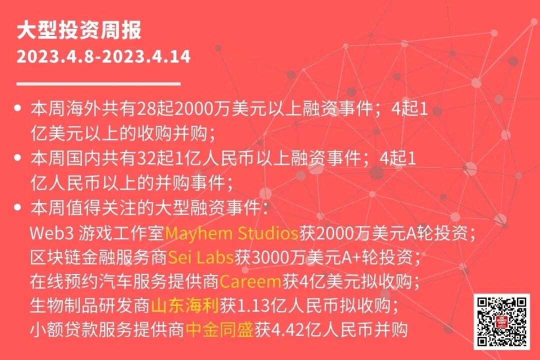 大型投资周报是「嘉程商业评论」整理的国内外大型TMT并购、融资事件,旨在及时提供最新投资信息、行情参考。