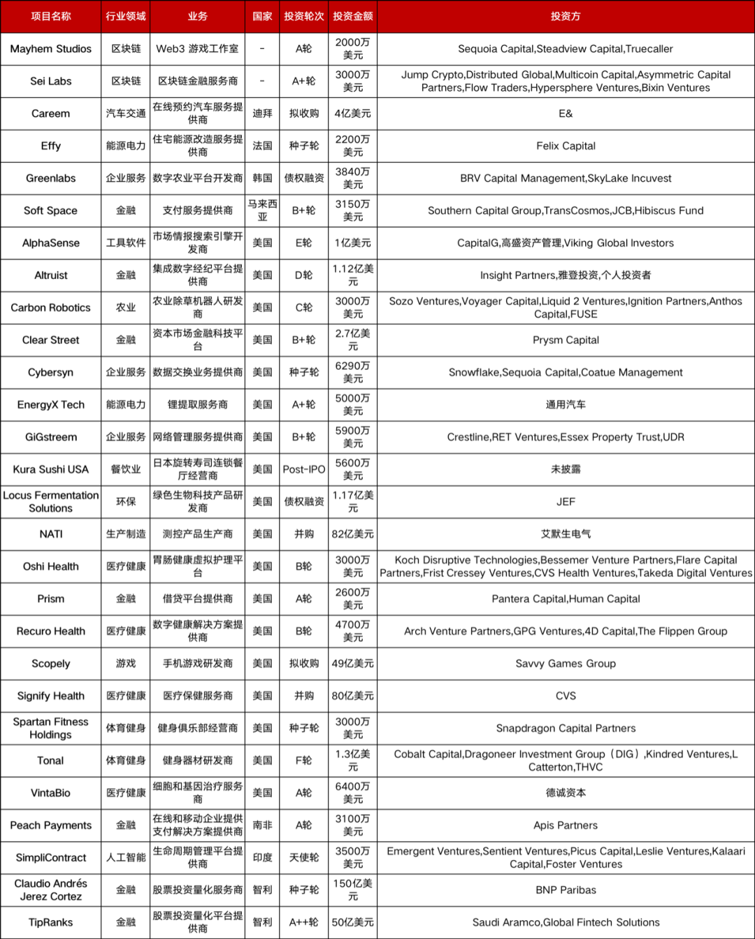 本周共有28起2000万美元以上的海外融资事件,其中: