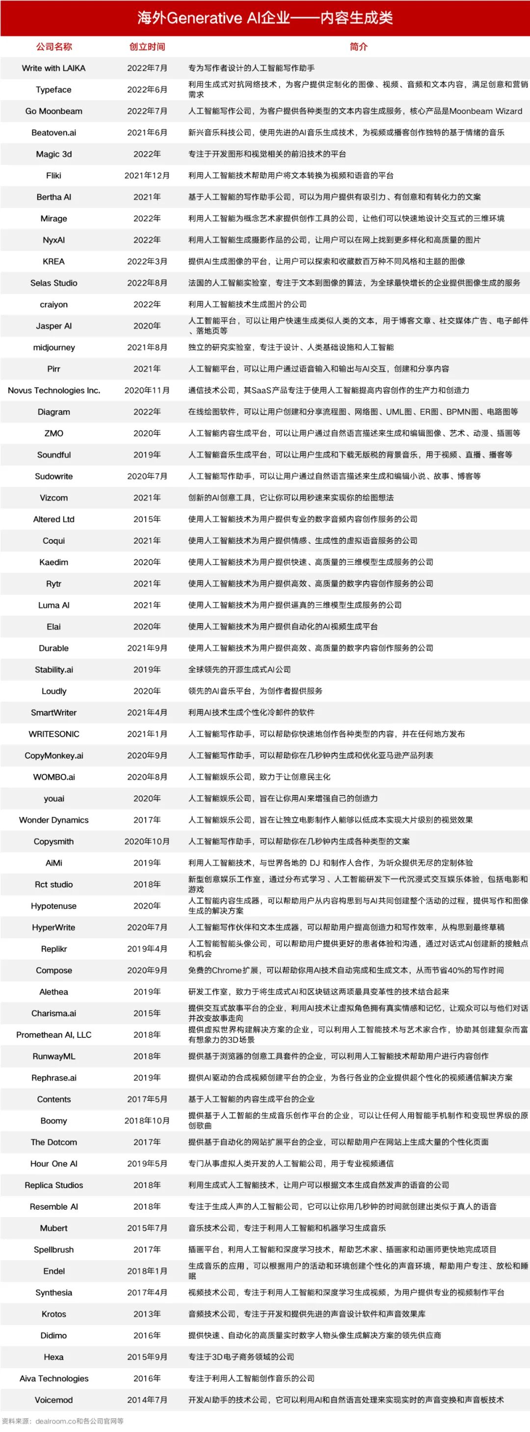 数据来源:dealroom.co和各公司官网等