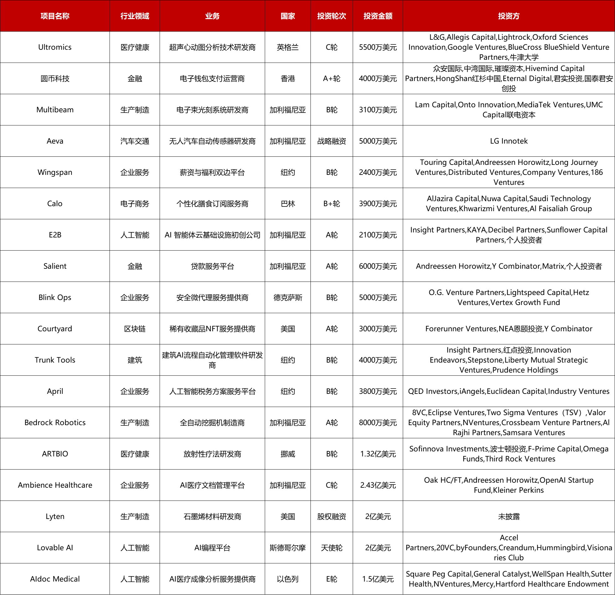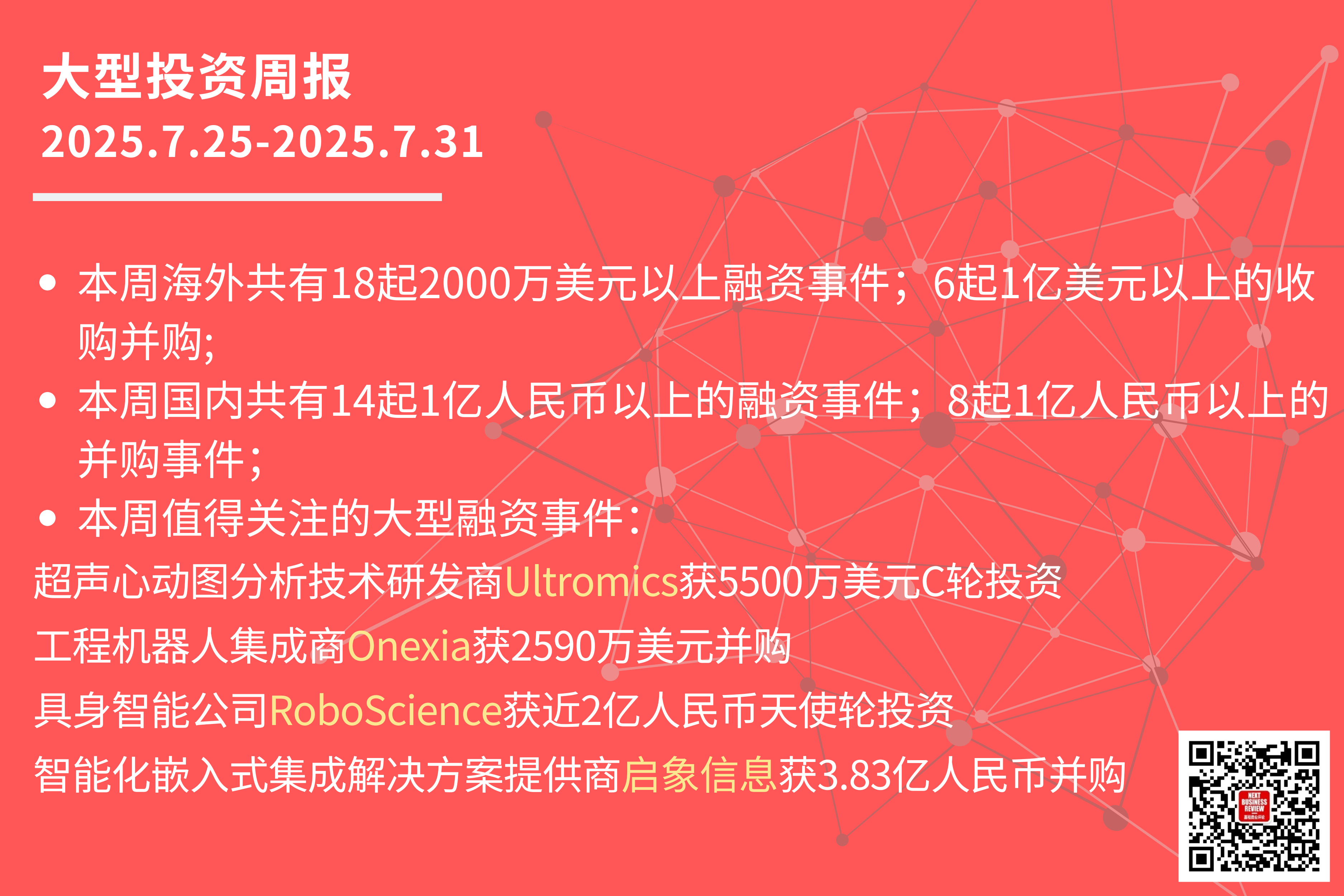 本周共有18起2000万美元以上的海外融资事件,其中: