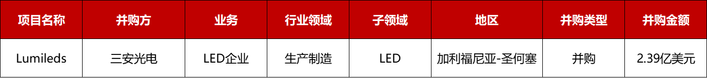 Lumileds为全球知名 LED 企业,经过多年深耕及创新,在LED 领域具备了完整的生产工艺环节、多样的产品种类以及广泛的客户资源。Lumileds主营业务为制造和销售用于汽车车灯、相机闪光灯和特种照明等领域的LED 产品和解决方案。