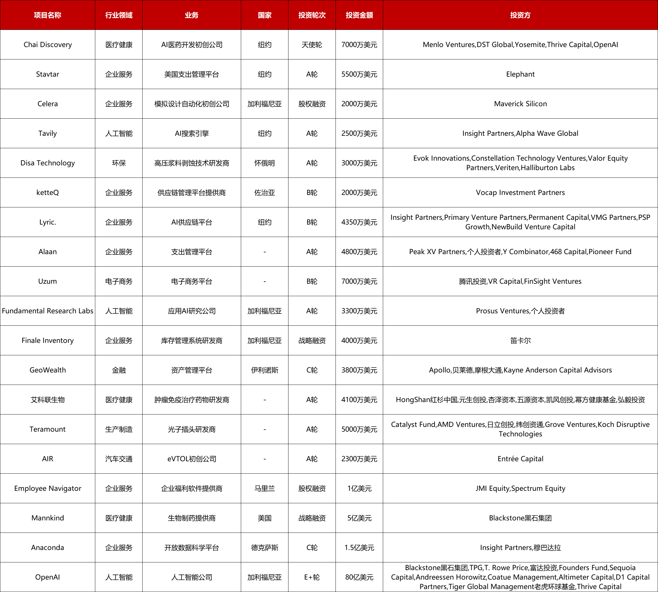 活跃的行业为企业服务(8)、医疗健康(4)、人工智能(3),