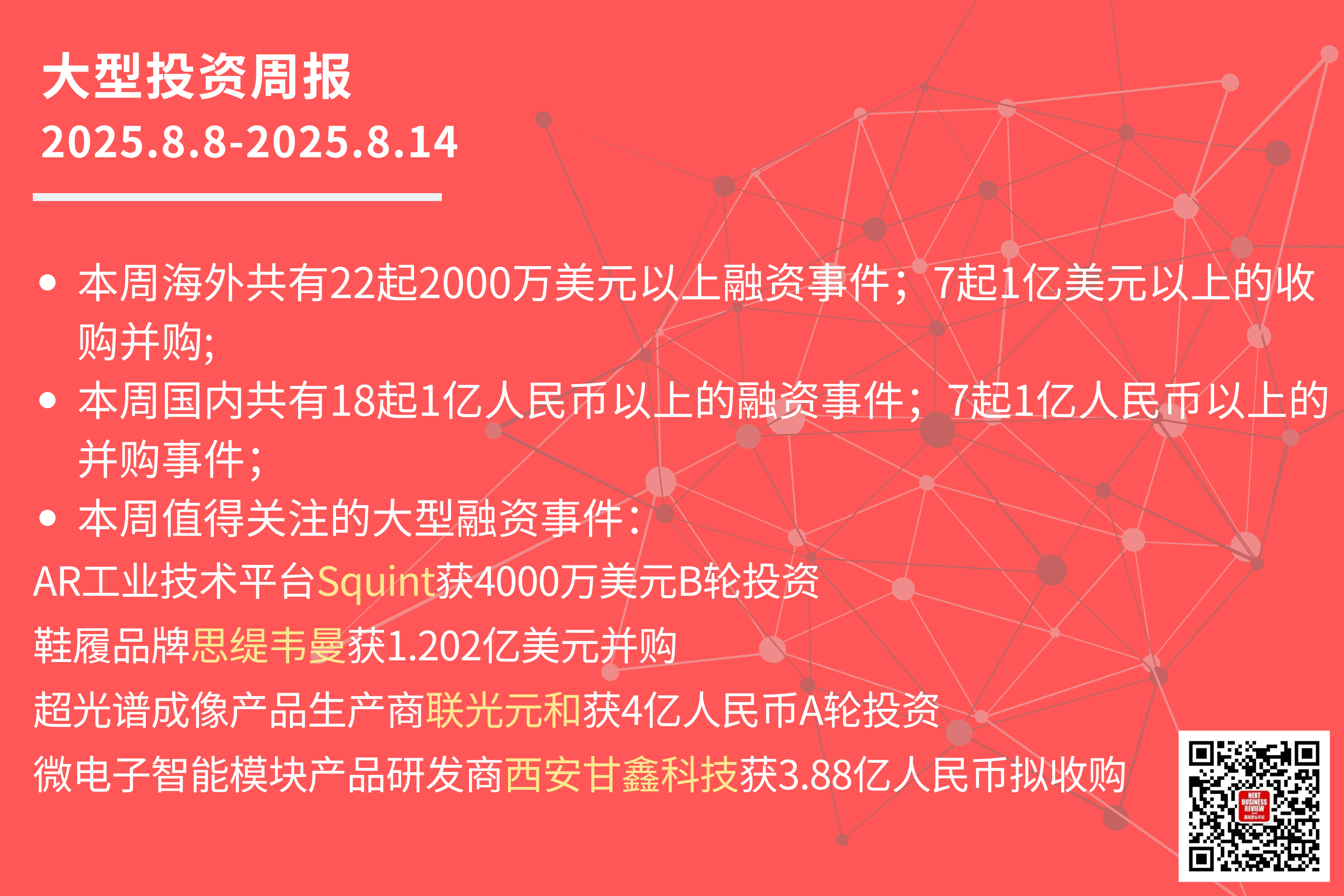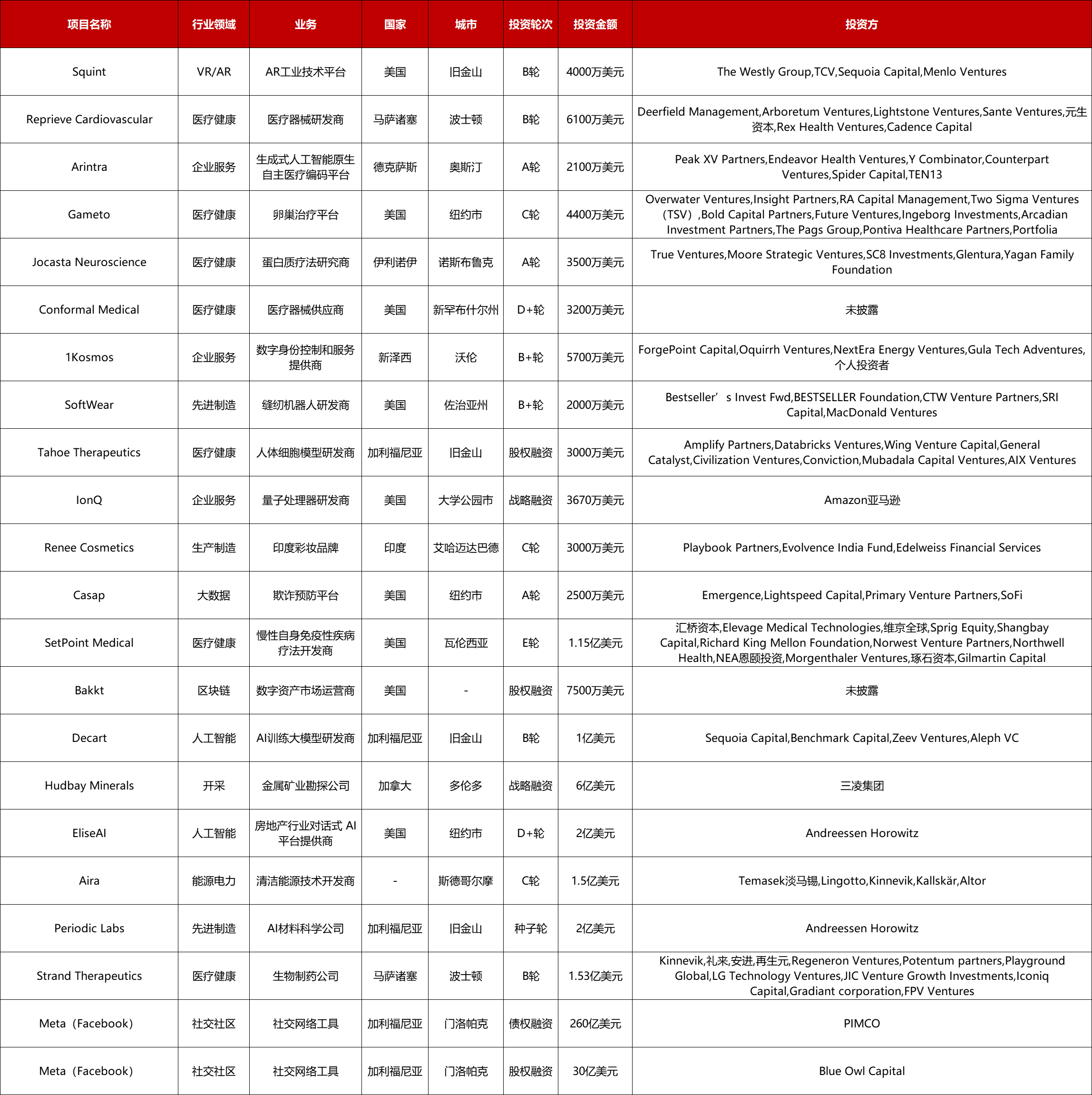 本周共有22起2000万美元以上的海外融资事件,