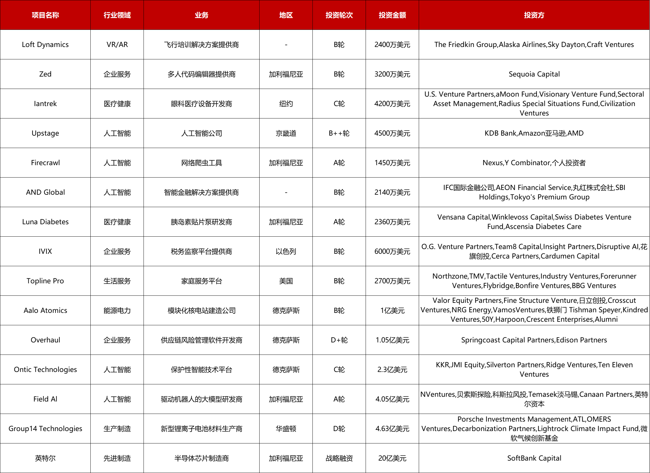 活跃的行业为人工智能(5)、企业服务(3)、医疗健康(2),
