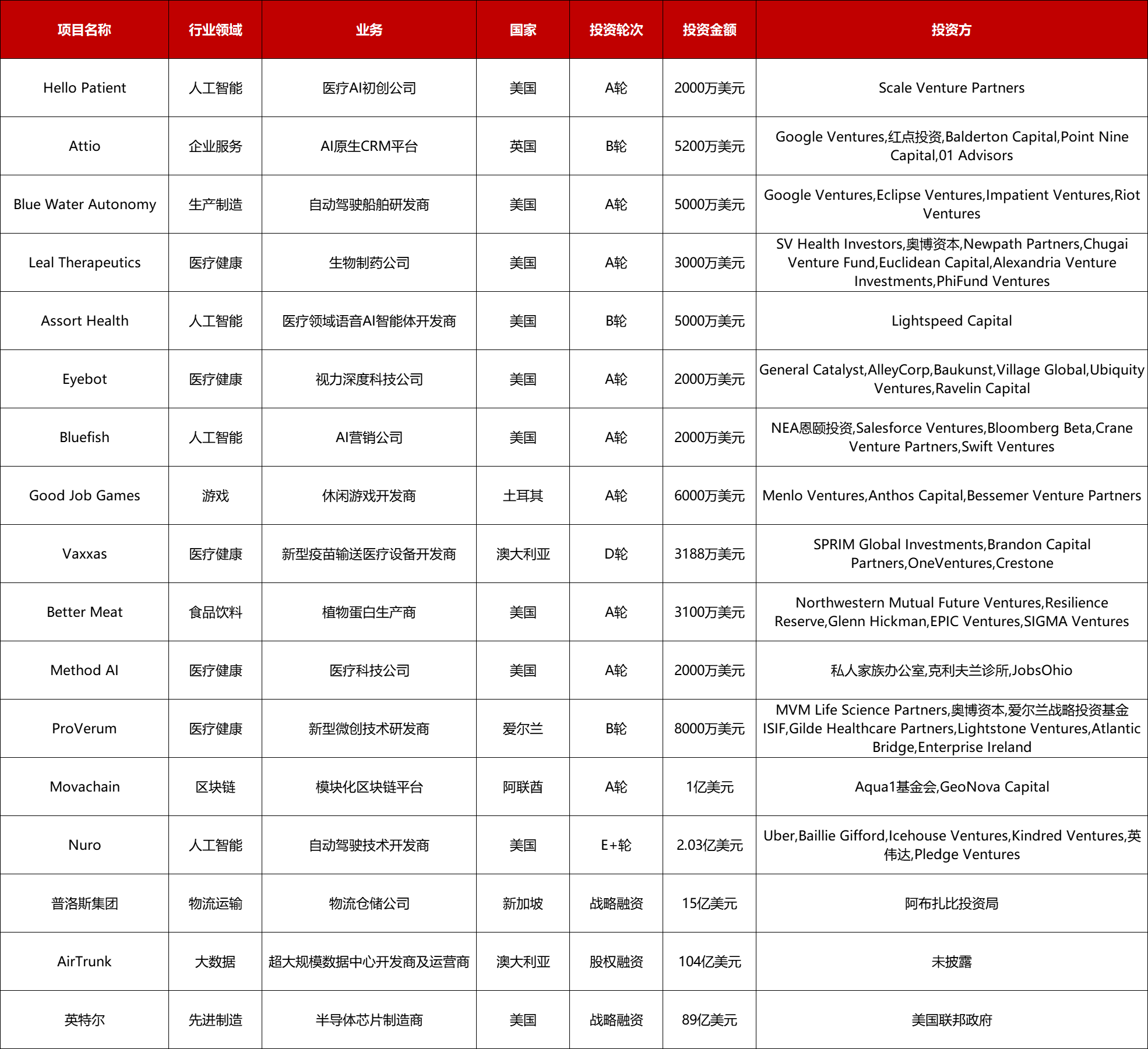 本周共有17起2000万美元以上的海外融资事件,其中: