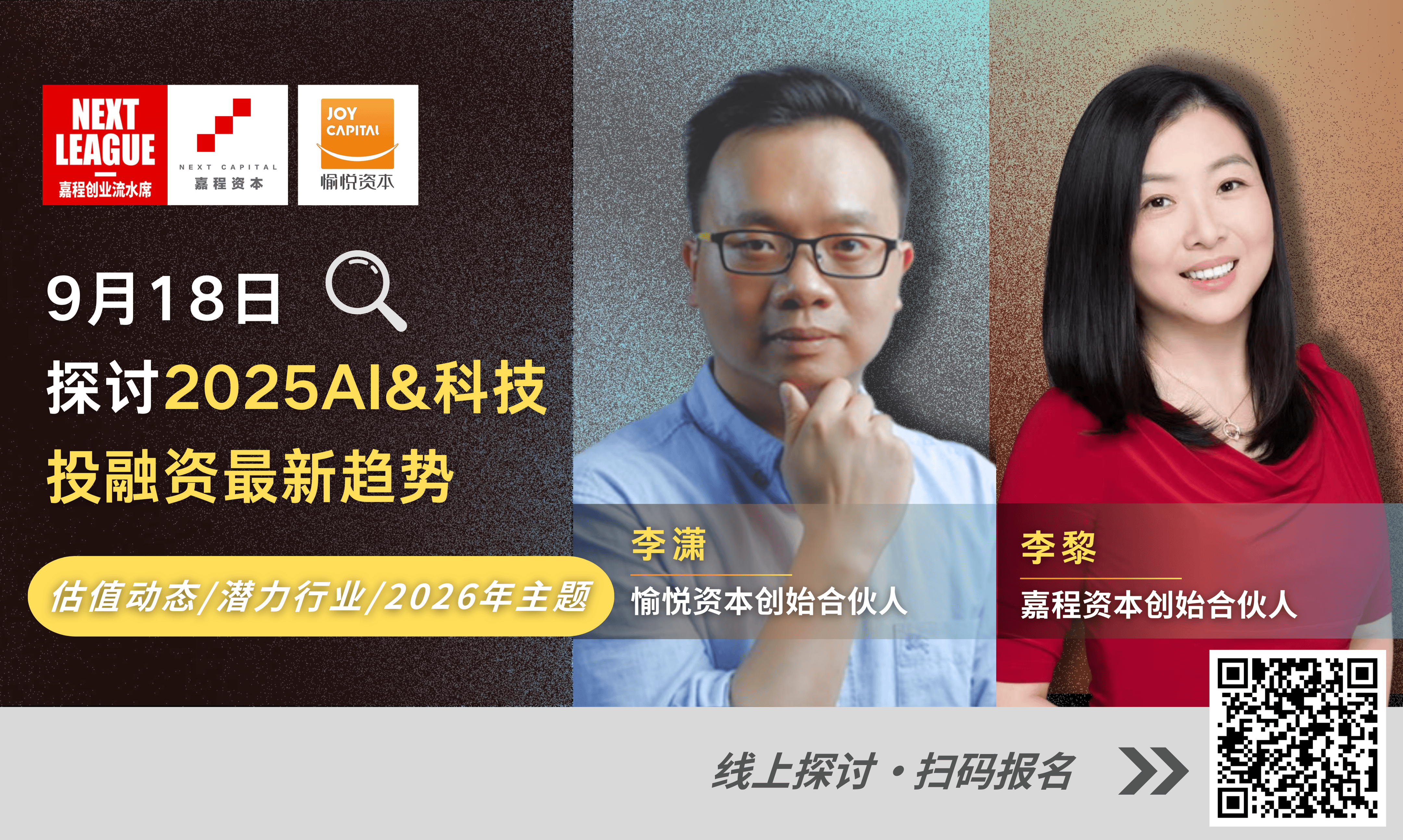 本周四晚19:00,与愉悦资本李潇、嘉程资本李黎深度探讨2025AI&科技投融资最新趋势!