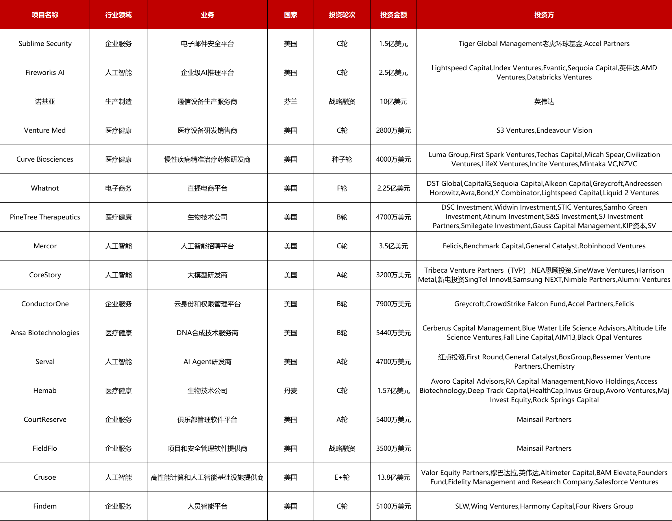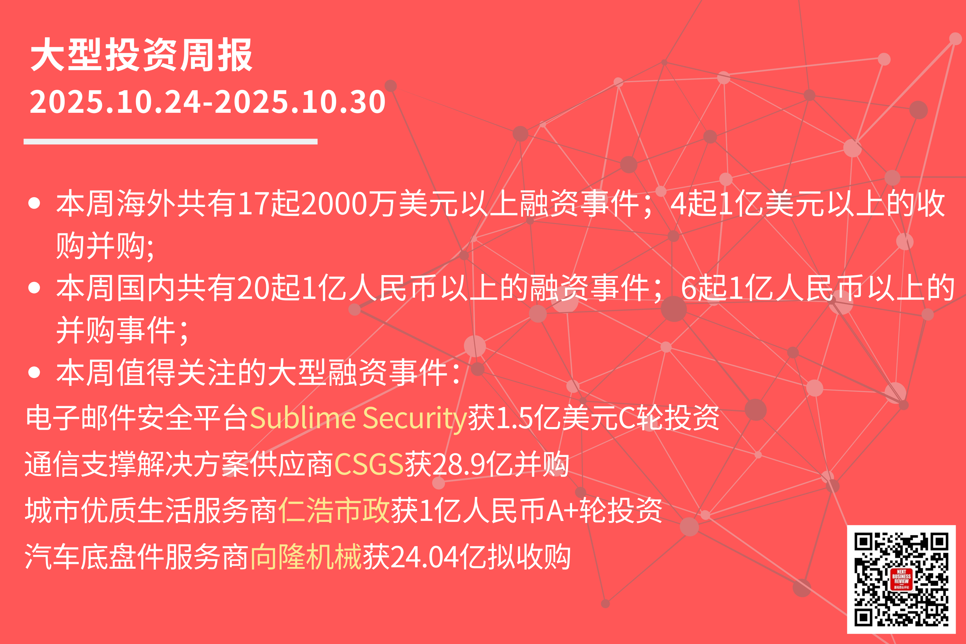 本周共有17起2000万美元以上的海外融资事件,其中: