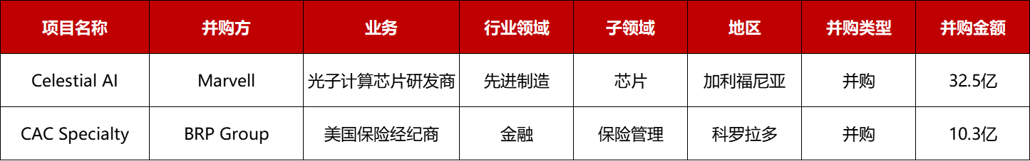 本周共有2起1亿美元以上的海外并购事件: