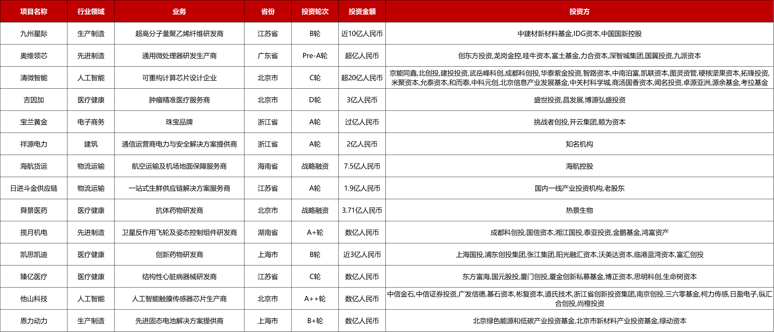本周共有14起1亿人民币以上的融资事件: