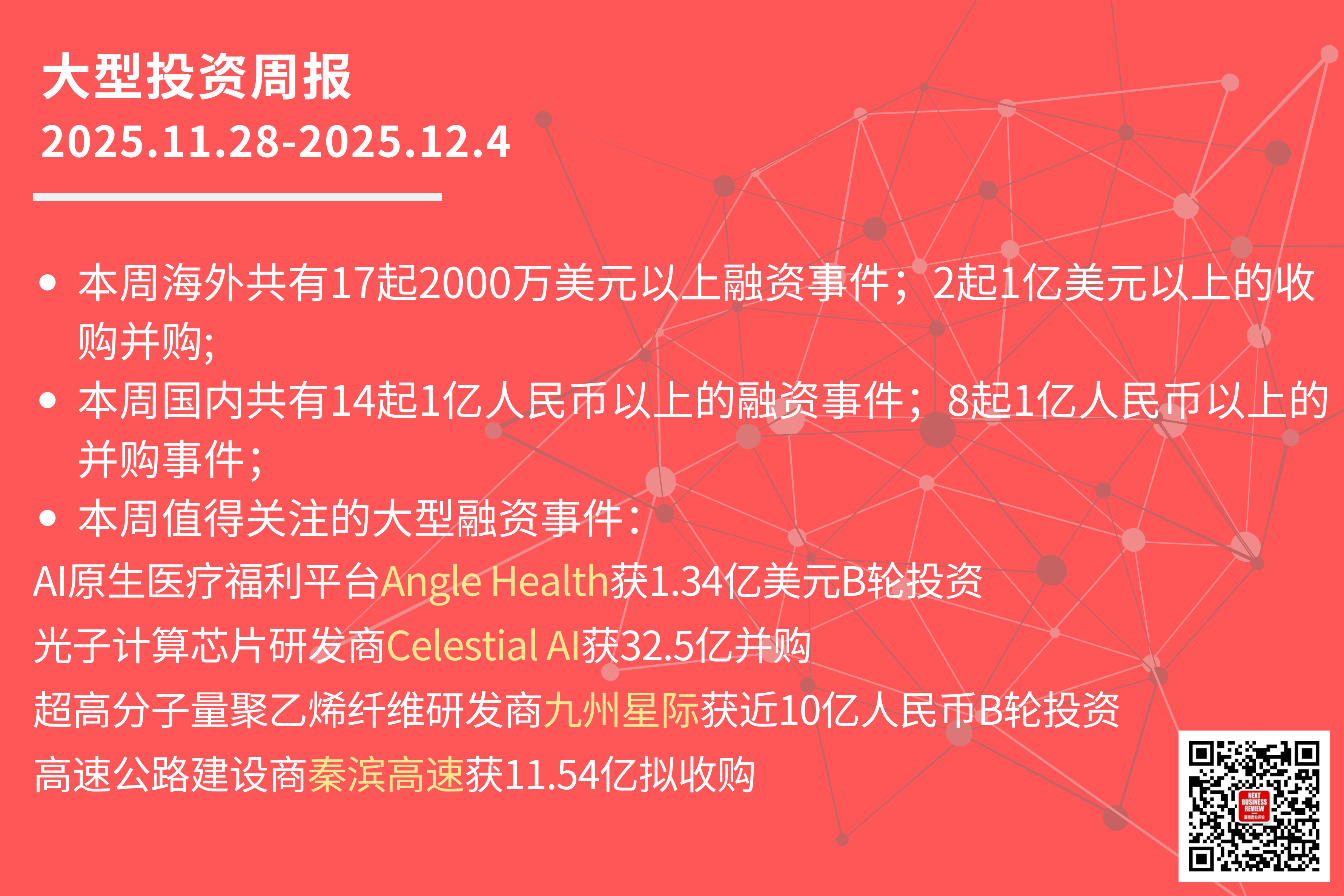 本周共有17起2000万美元以上的海外融资事件,其中:
