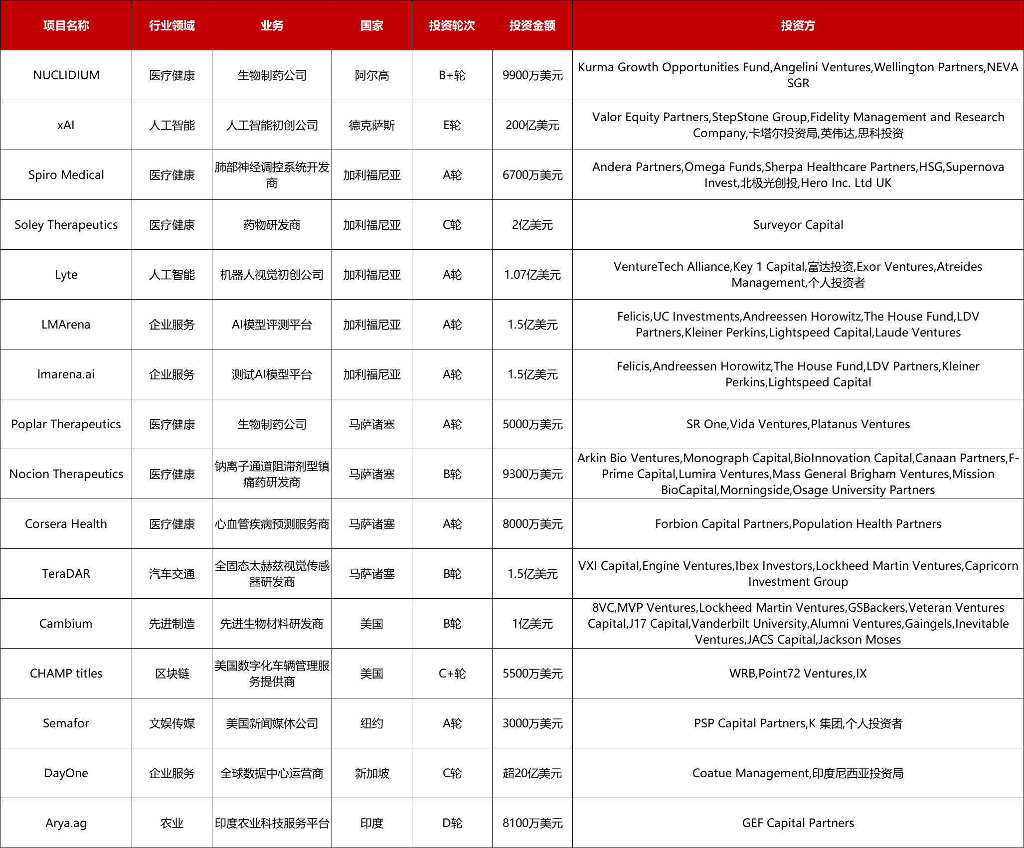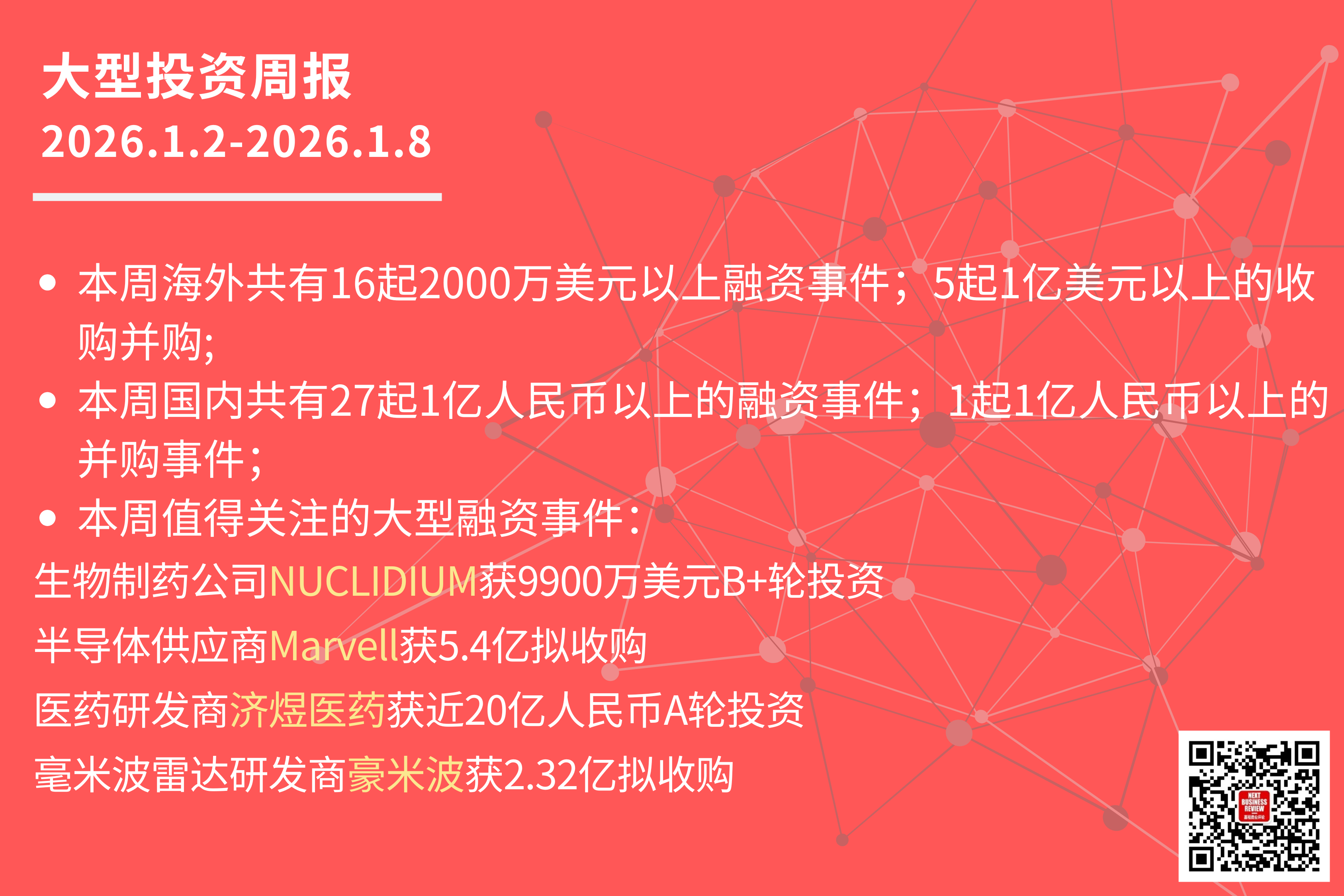 本周共有16起2000万美元以上的海外融资事件,其中: