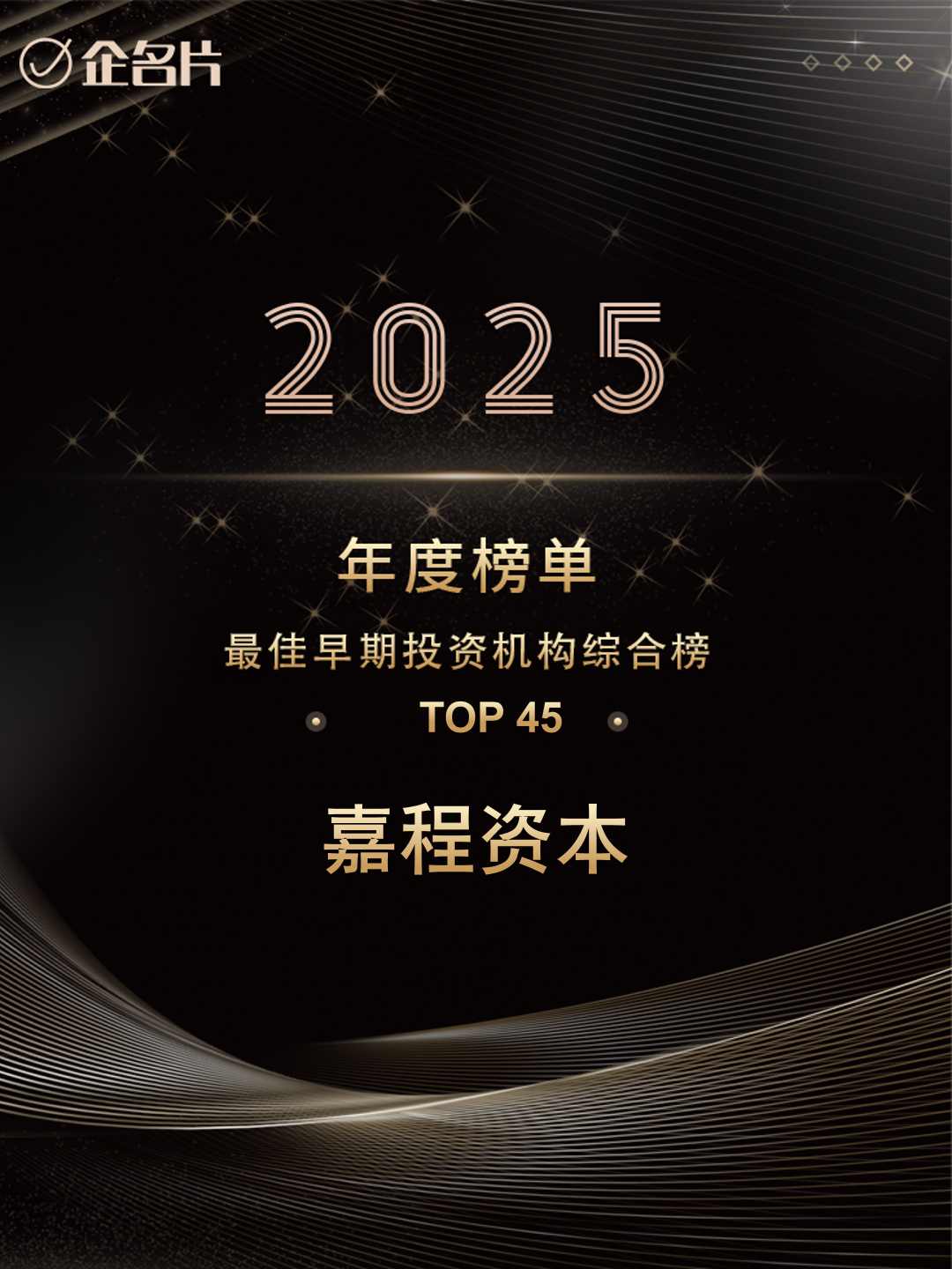 近日,企名片发布「2025中国股权投资系列年度榜单」。嘉程资本荣获「中国最佳早期投资机构综合榜TOP45」、「中国最佳早期投资机构活跃榜TOP45」两项奖项。