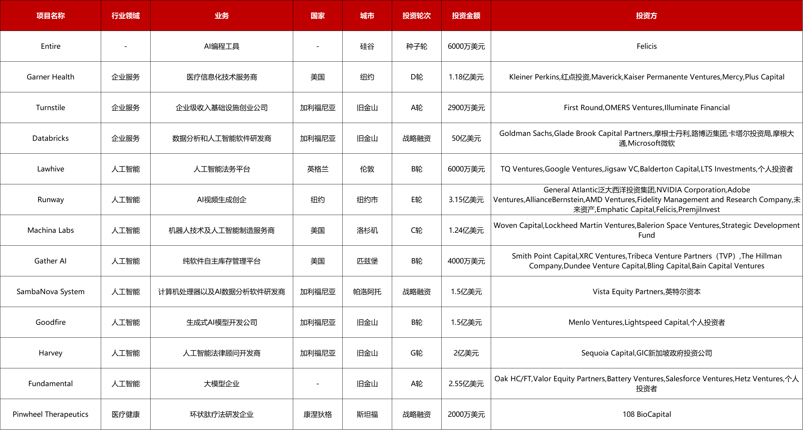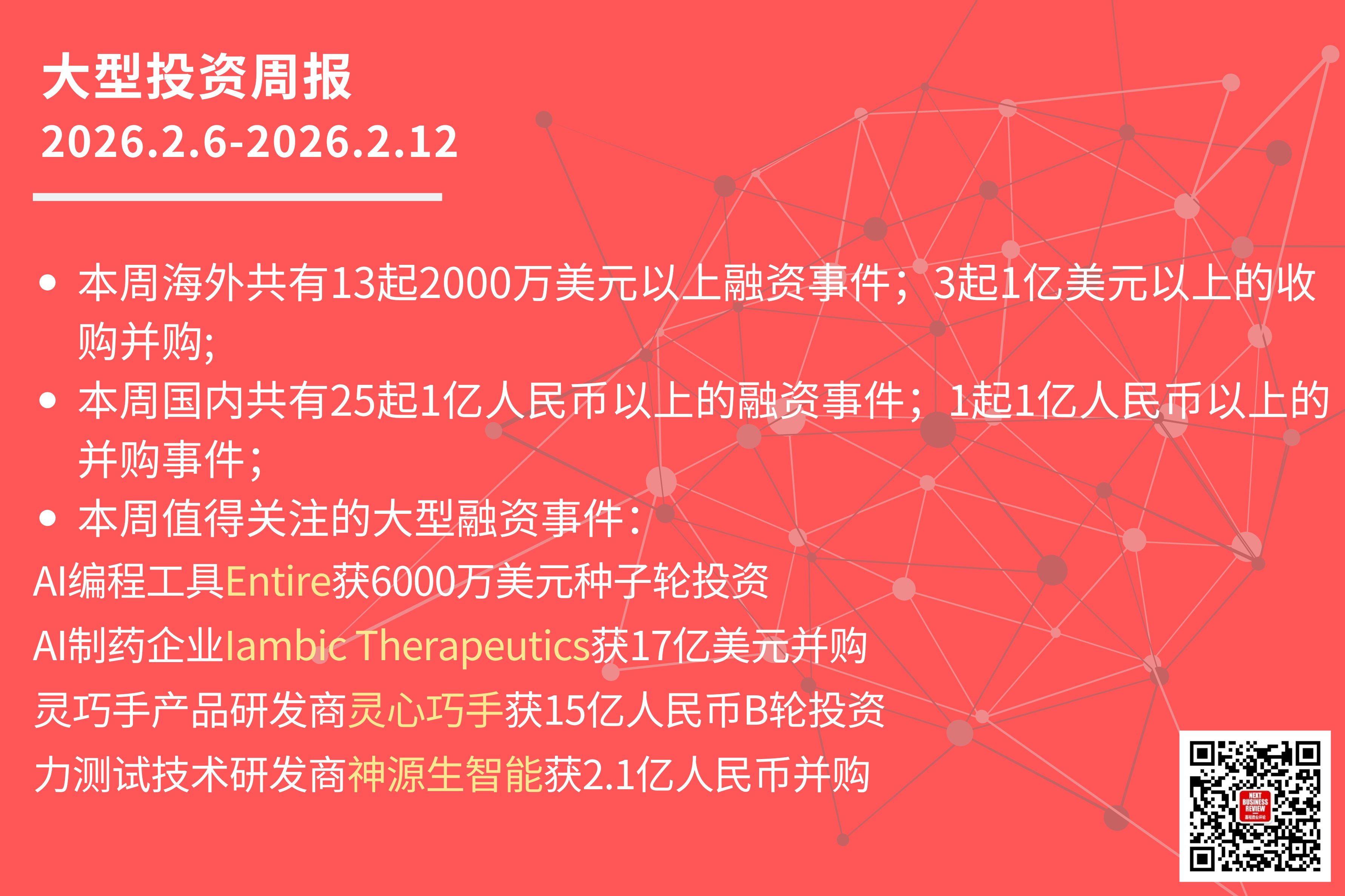 本周共有13起2000万美元以上的海外融资事件,其中: